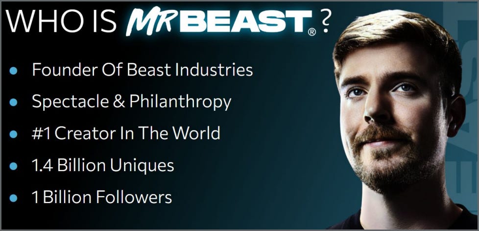 Beast Industries ($200M Stake): This one caught everyone by surprise and while random it’s not completely idiotic. (It could be a smart way to portal NFTs to his 1B+ audience?)