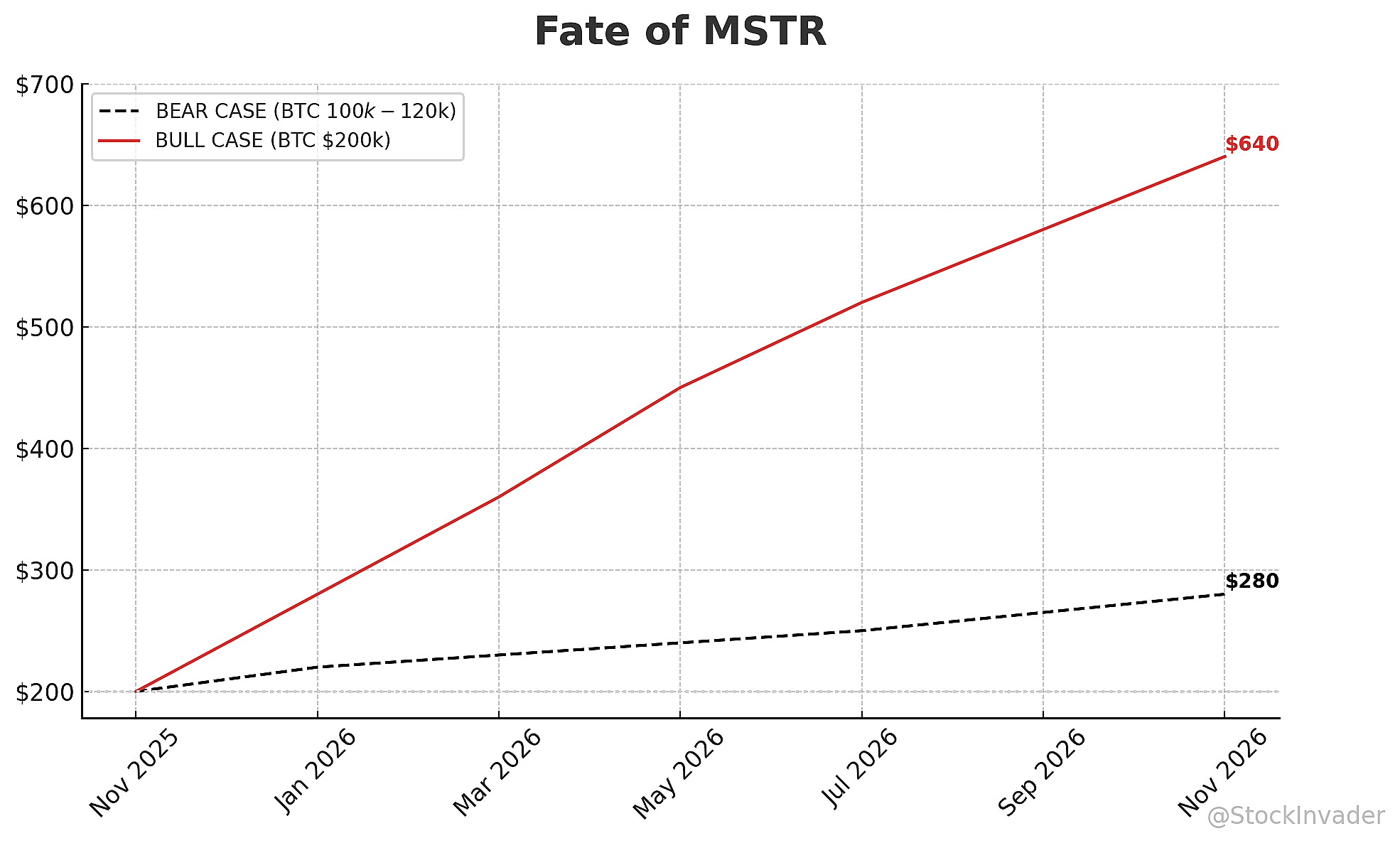 My projections rests entirely on Bitcoin, I don’t think $200,000 happens next year but perhaps a new ATH = $150,000. Speculation... However S&P Global aggregates 14 analysts and estimates a floor of $200, a probable outcome of $524 and a peak of $705. The old mNAVs we have seen in the past like 3.0x are probably not returning and that’s fine.